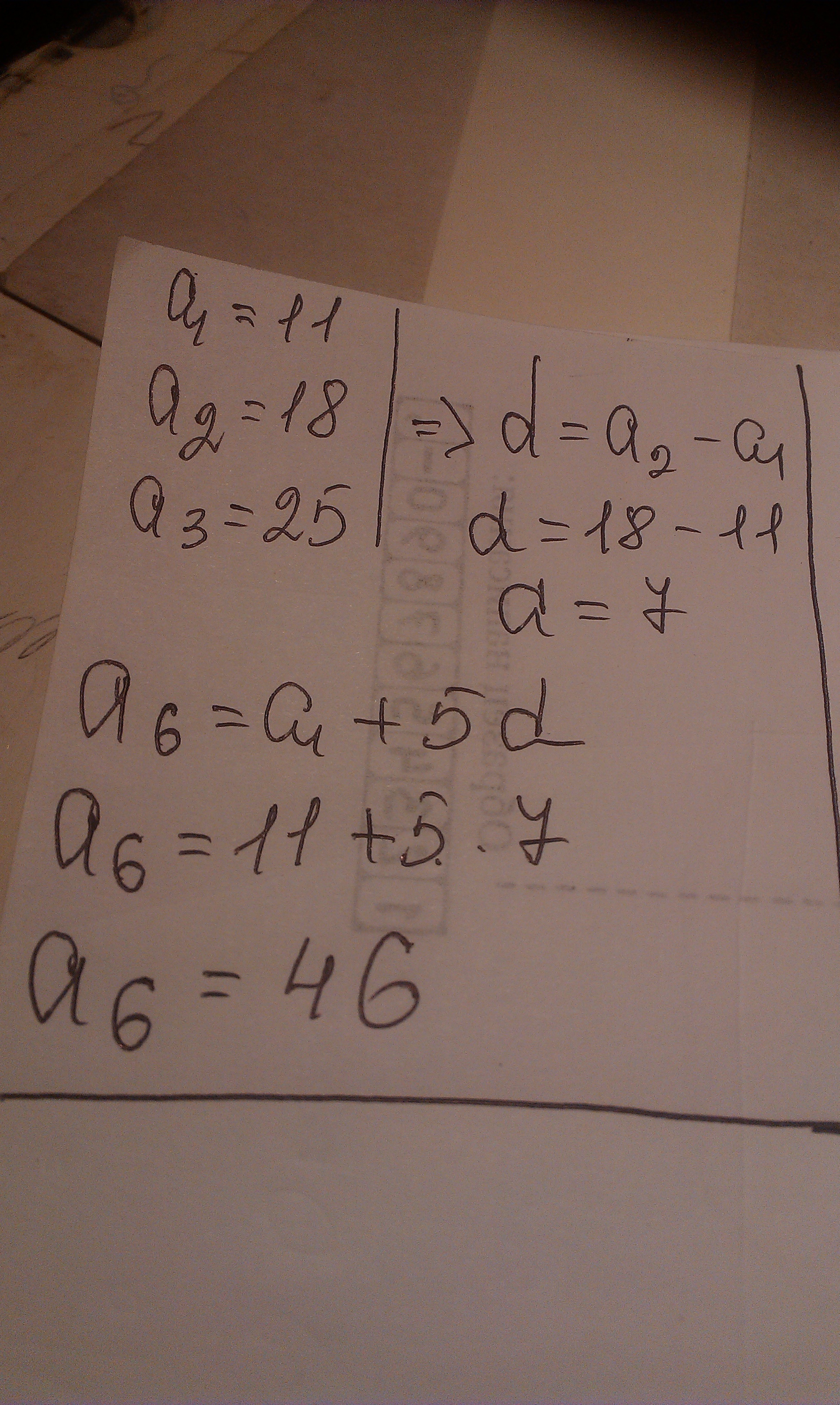 Дана арифметическая прогрессия 11;18;25;.... .Какое число стоит в этой последовательности на 6-м месте?