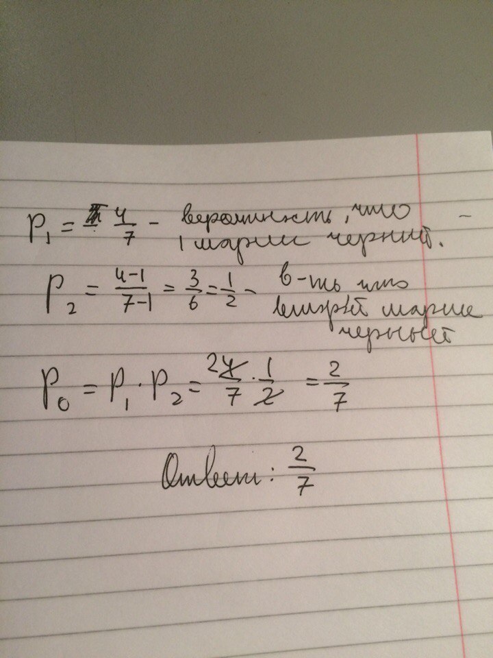 В урне 3 белых и 4 черных шара. Из урны дважды вынимают по одному шару, не возвращая их обратно. Найти вероятность того, что оба шара черные
