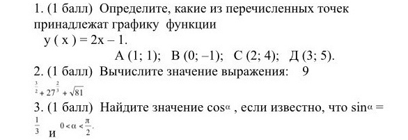 3) cos²α=1-sin²α=8/9. Так как по условию угол α принадлежит 1 четверти, то cos α>0. Тогда cos α=√(8/9)=2*√2/3.