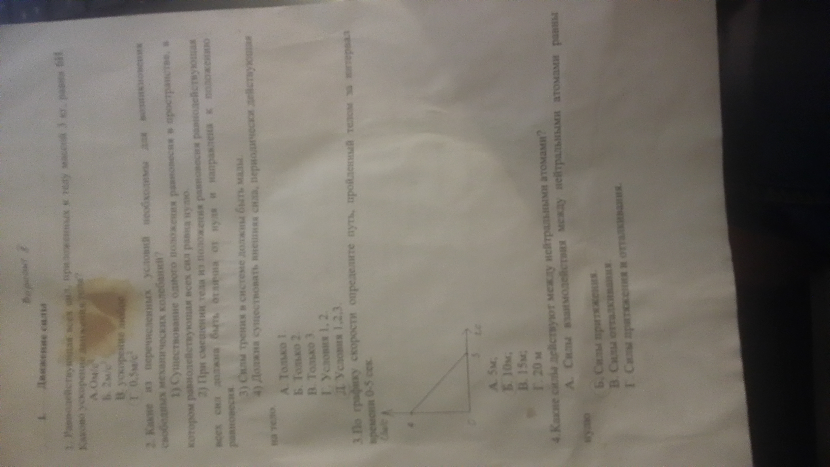 3) S=площади фигуры под графиком скорости=1/2*4*5=10м; Б;