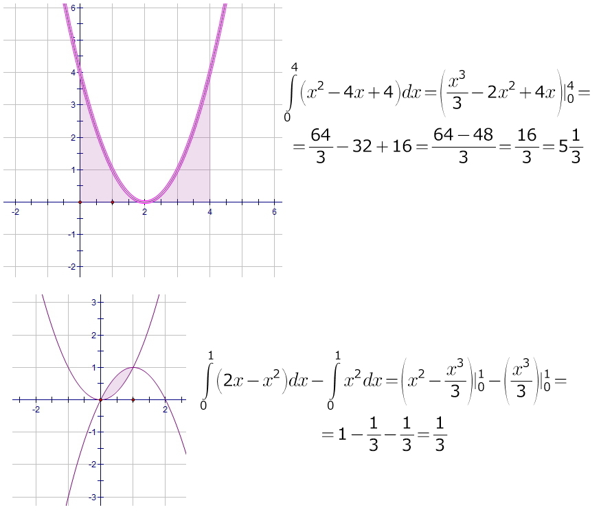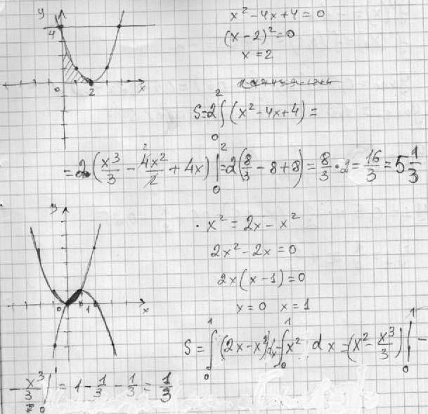 во втором ошибка))) и в первом нужна площадь до х=4...