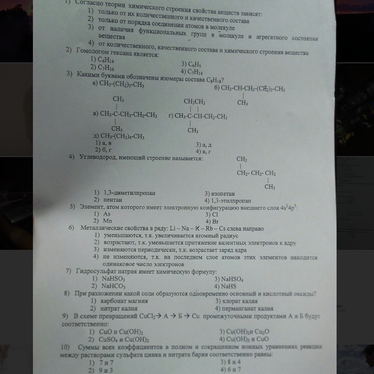 ответ: 1) 4, 2)3, 3)Б,Г 4)1 5)Br , 6)1, 7)3, 8)1, 9)4, 10)1