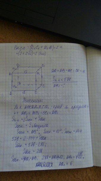 Найдите боковое ребро правильной четырёхугольник призмы,сторона её основания равна 12,а площадь поверхности равна 576
