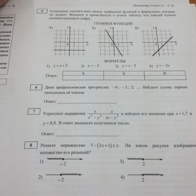 в) y = х - 2 (ответ 3)