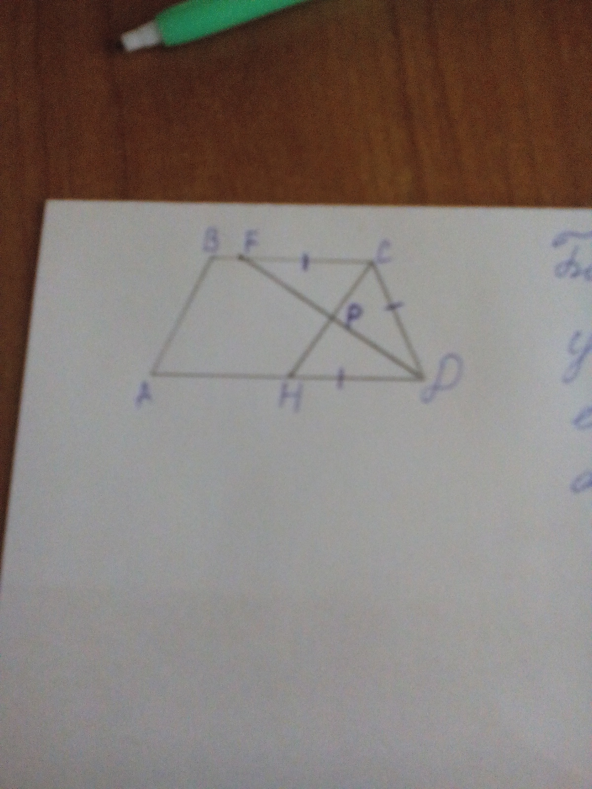 биссектриса любого угла трапеции отсекает на её основании отрезок , равный боковой её стороне , значит FC=CD=DH . Соеденив точку F и H мы получаем равносторонний параллелограмм(ромб)HFCD, биссектрисы трапеции в этом ромбе являются диоганалями , а по свойству диогоналей ромба , точка пересечения диогоналей ромба равноудалена от его сторон, значит точка Р равноудалена от прямых ВС , СD и AD.