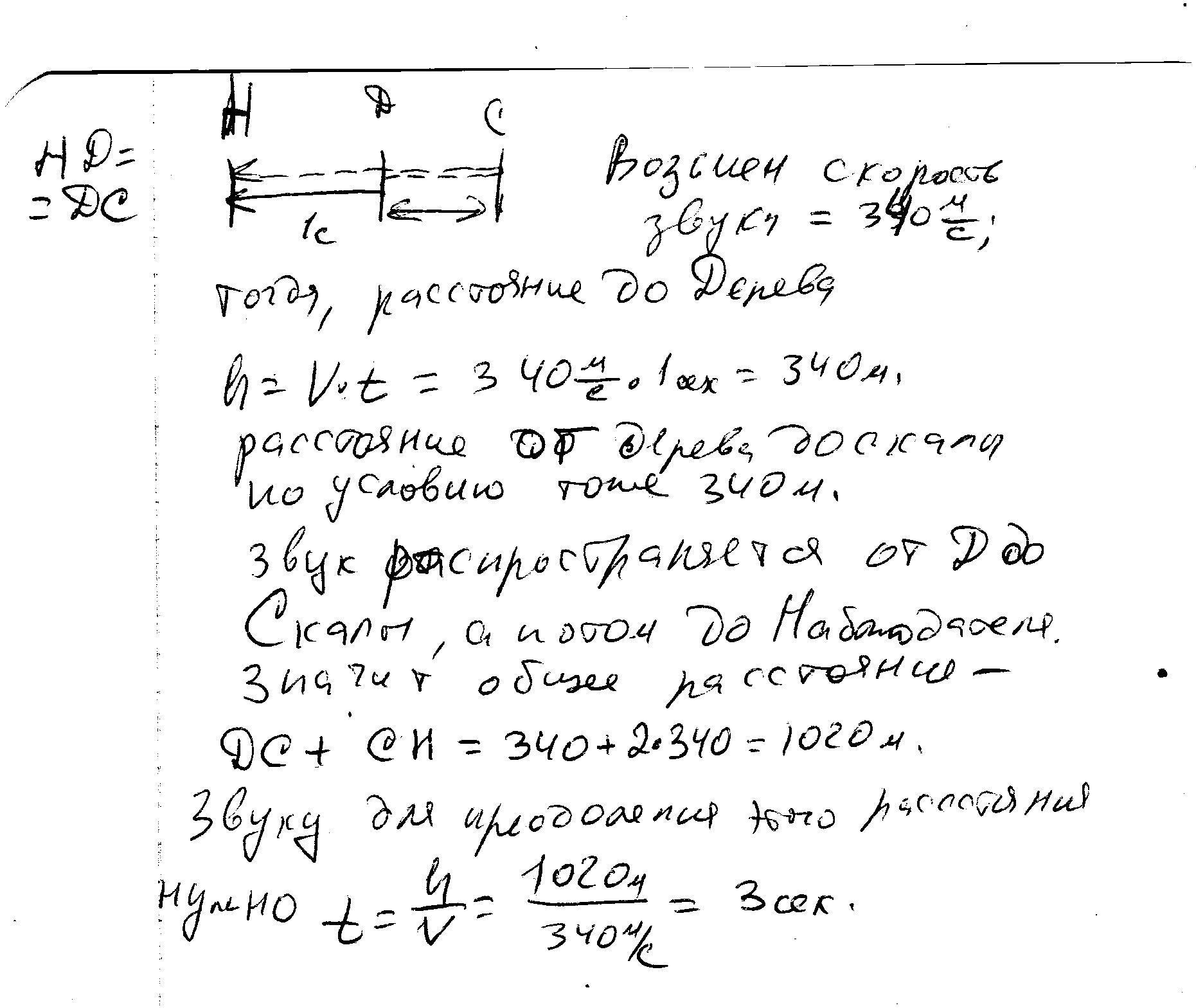 Точно посредине между наблюдателей и скачай в дерево ударила молния . Наблюдатель услышал первый раскатать грома через 1 с . Через какое время после вспышки молнии Наблюдатель услышит отраженный от скалы звук?