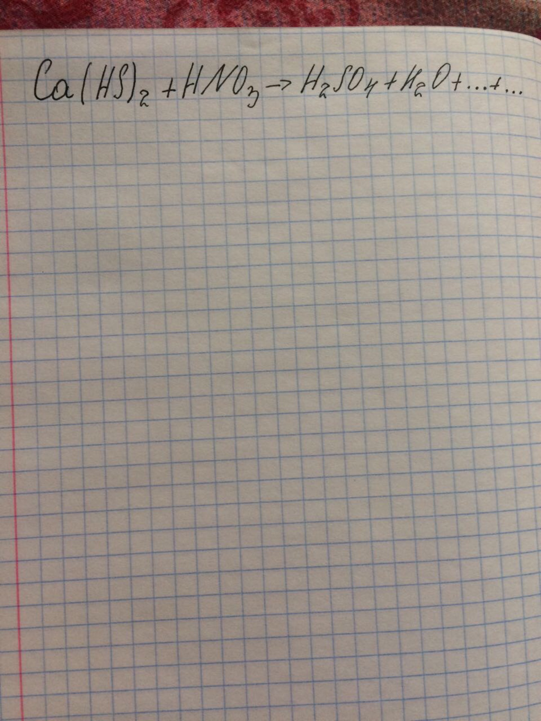 Ca(HS)2+18HNO3(КОНЦ.) ->.Сa(NO3)2+2H2SO4+16NO2. +8H2O