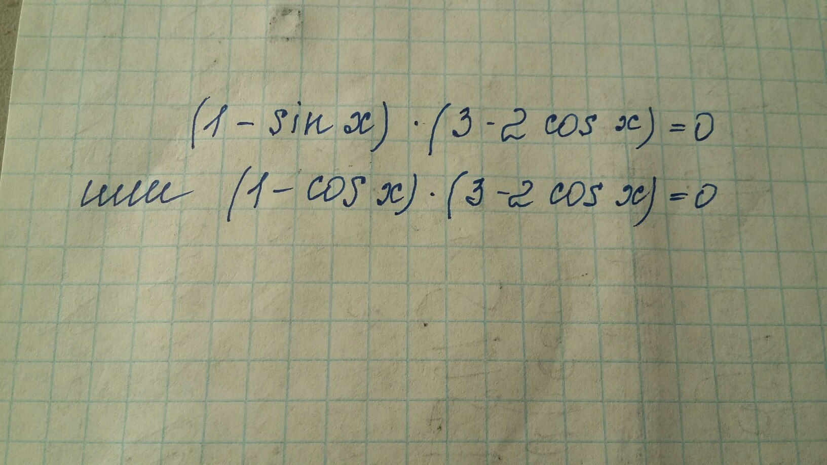 (1 - sinx)*(3 - 2cosx) = 0