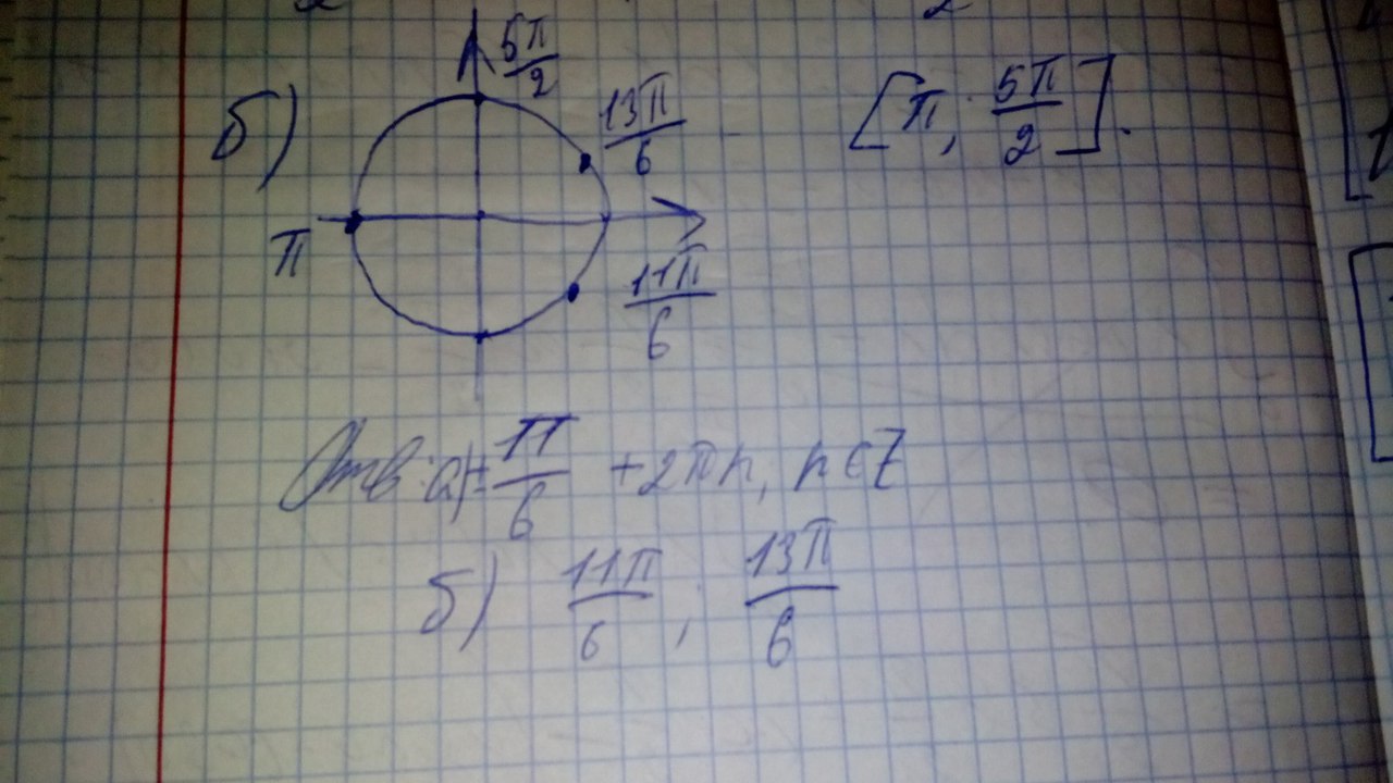 b)Найдите все корни этого уравнения, принадлежащие промежутку от π до 5π/2