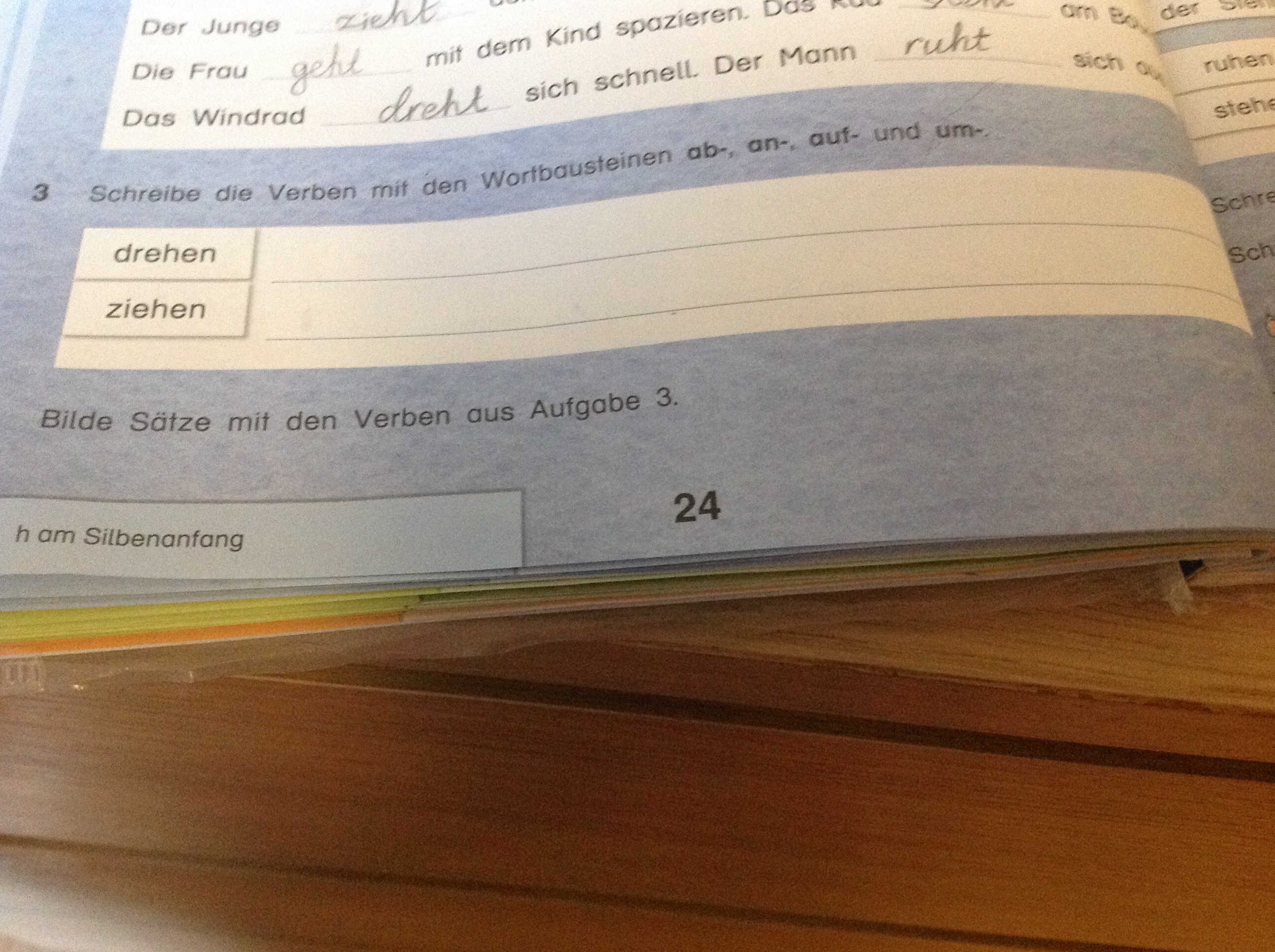 Значит на первой странице задание такое: Запишите глаголы с соответствущими приставками Ab, auf и так далее и придумайте с ними предложения.