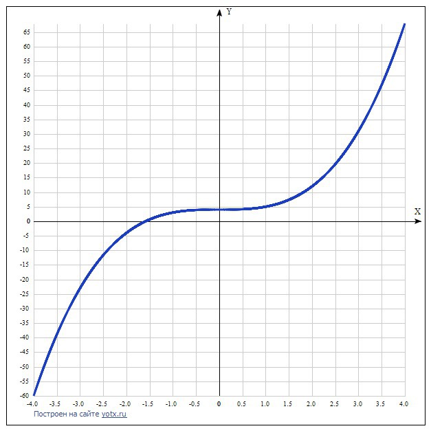 f(0) = 0³+4 = 4.Точка: (0, 4)4) Асимптоты функции.