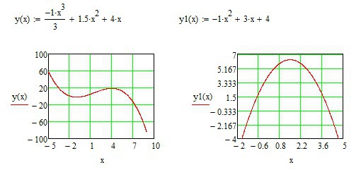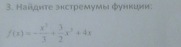 Точки экстремума найдём исходя из равенства нулю первой производной от заданной функции. Уравнение 1 производной y'(x)=-1*x²+3*x+4, она равна нулю в точках х1=-1 (точка локального min, производная меняет знак с - на +) и х2=4 (точка локального Max, производная меняет знак с + на -). Графики функции и её 1 производной приведены в файле.