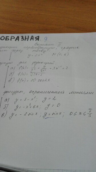 1) найти первообразную ( а не производную) для y=2x^4, проходящую через М(1;6) :