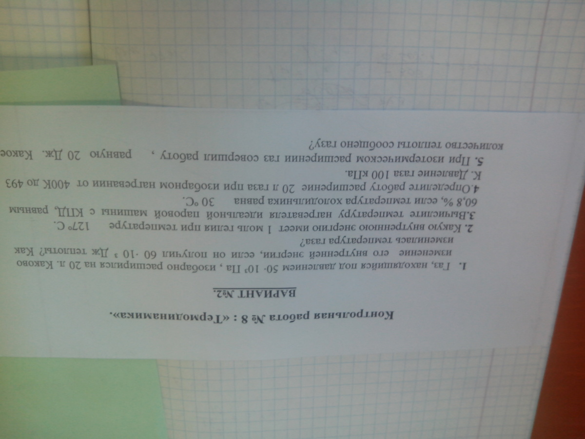 В Приложении находятся 5 вопросов(задач) по контрольной работе. Все задачи "на газы", достаточно простую тему с ОДНОЙ формулой p*V/T = Const.