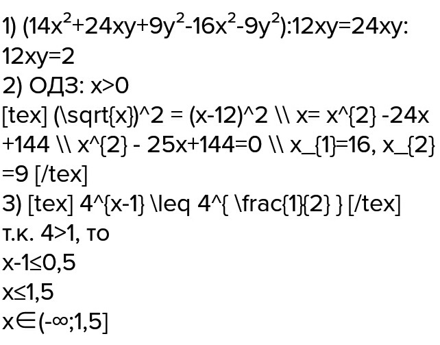 1) (14x²+24xy+9y²-16x²-9y²):12xy=24xy:12xy=2