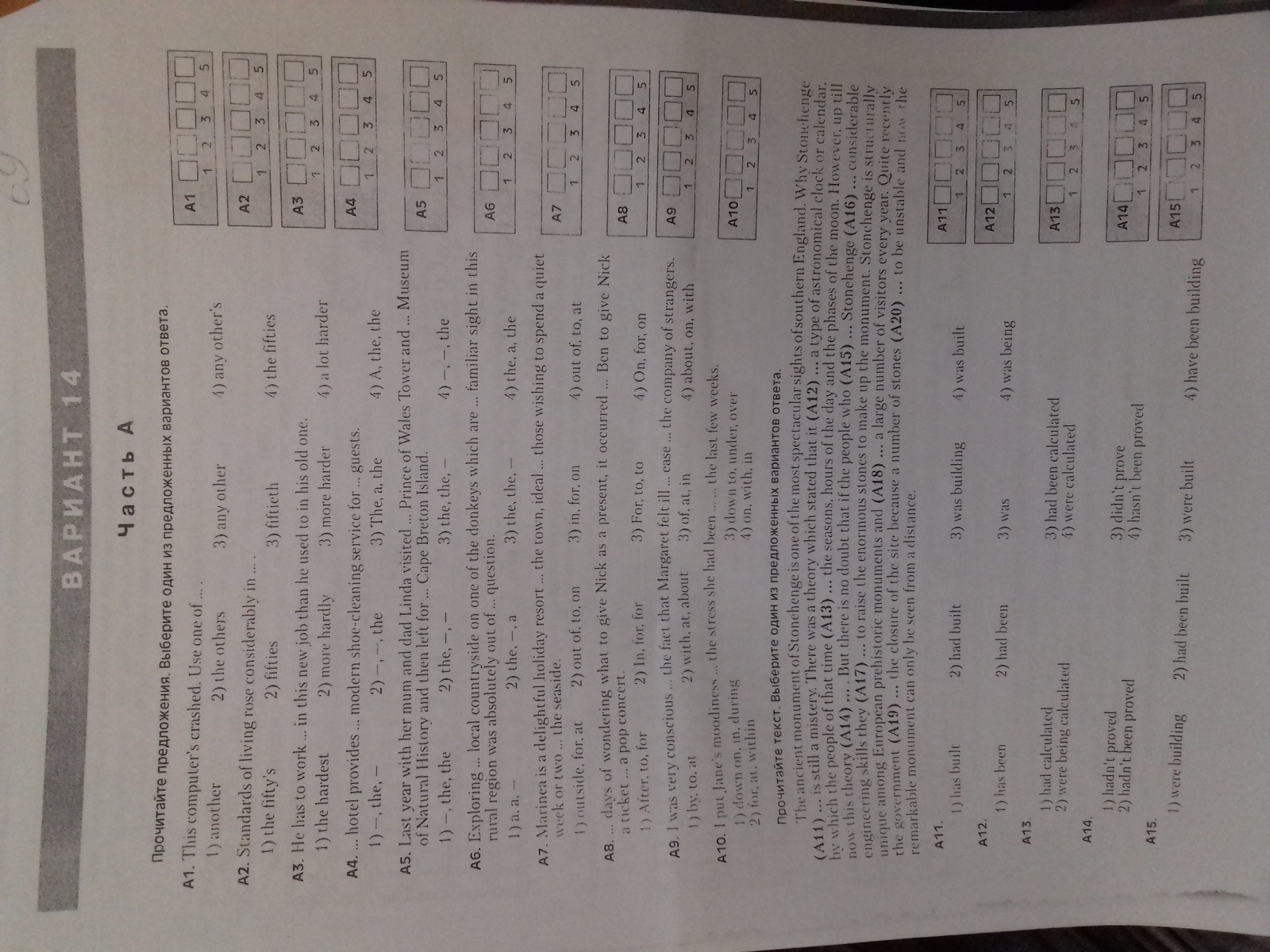 A11-4, A12-2, A13-1, A14-4