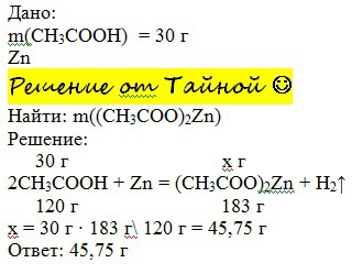 Определите массу соли , которая образуется при взаимодействии 300г уксусной кислоты с цинком