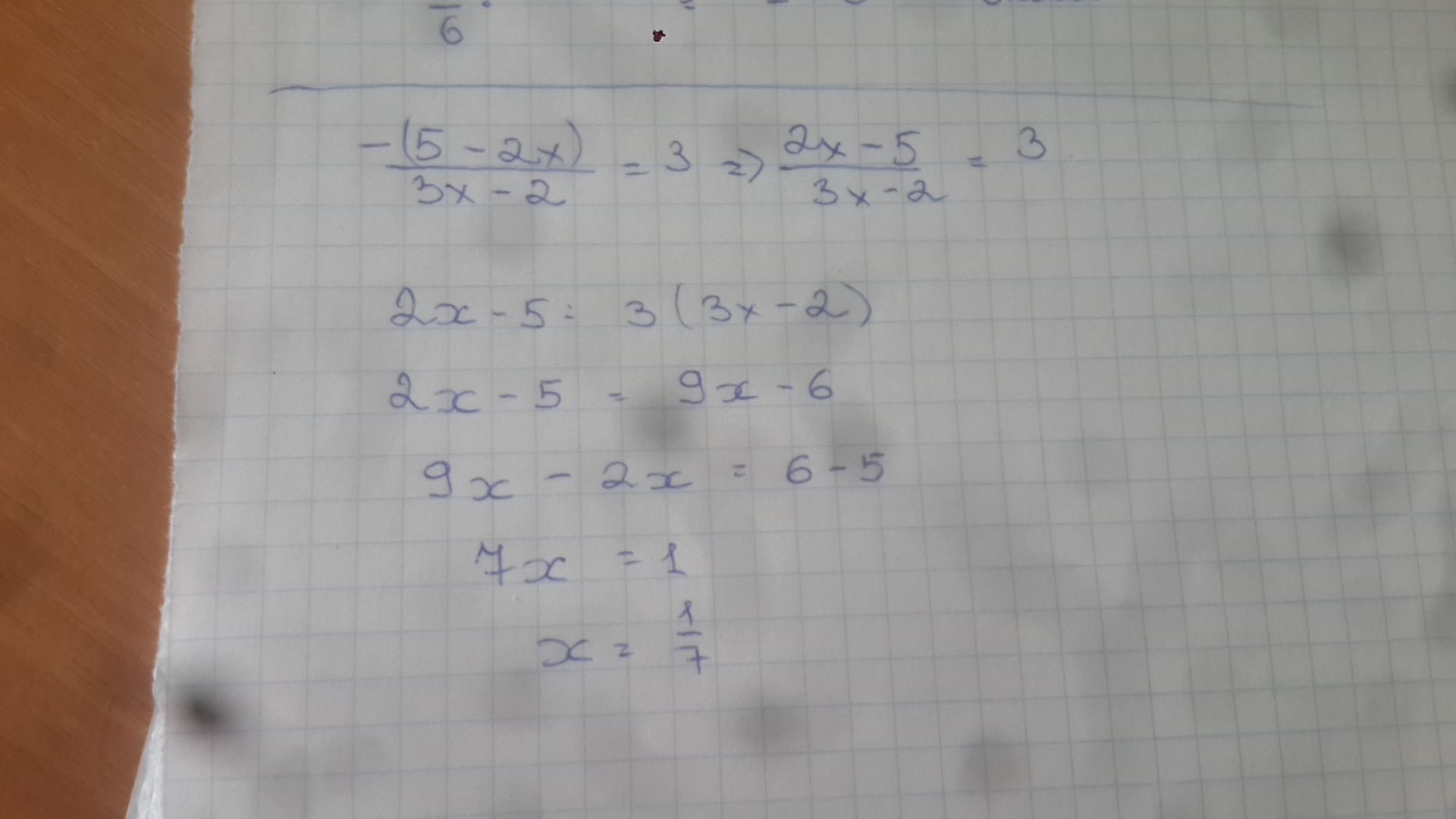 -(5-2*(1/7):(3*(1/7)-2)=(-5+(2/7)):((3/7)-2)=((-35+2)/7):((3-14)/7)=(-33/7)*(-7/11)=3