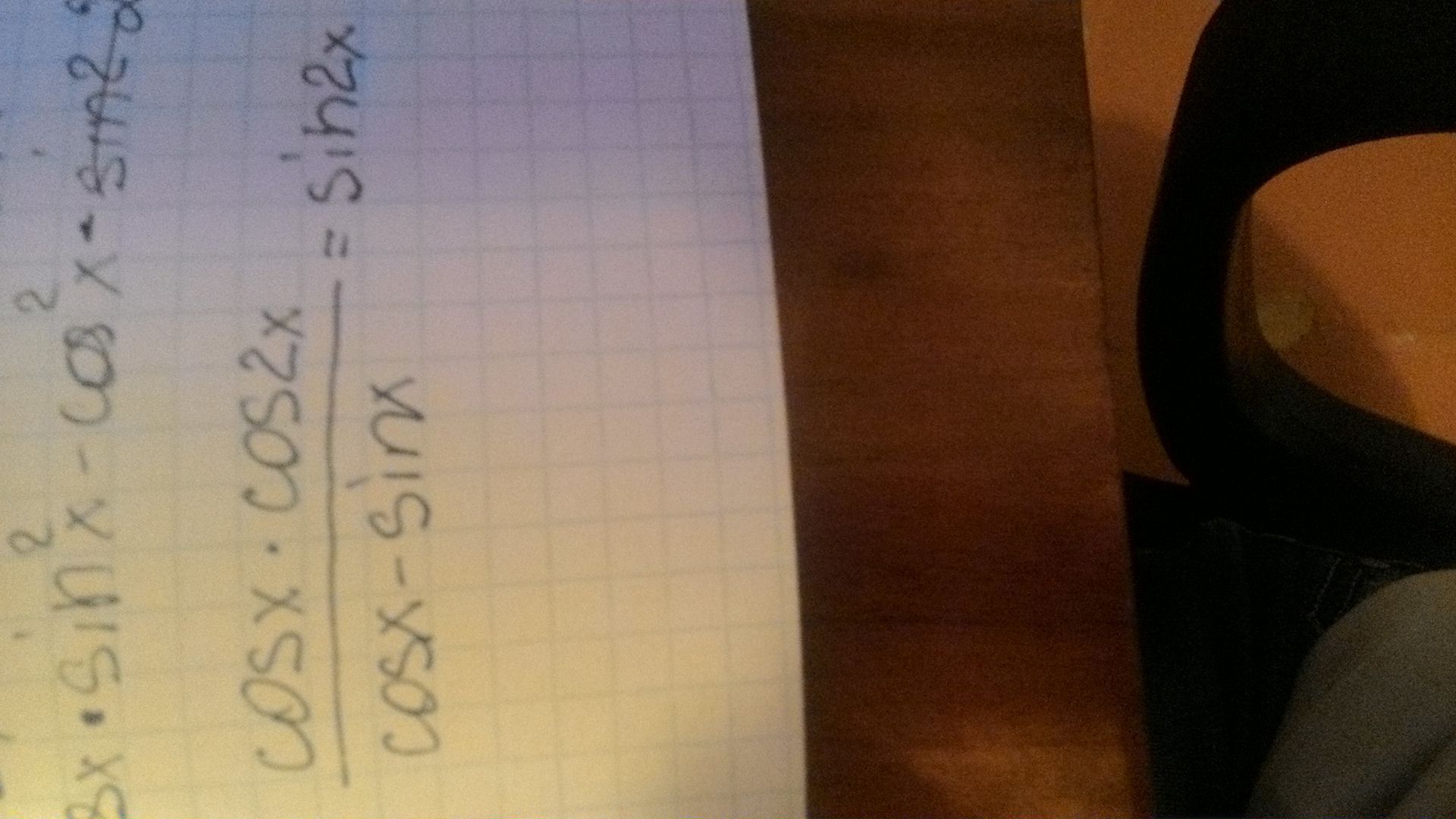 во второй строчке вы сократили на cosx-sinx, значит в третьей у вас должно быть cosx(cosx+sinx)=sin2x