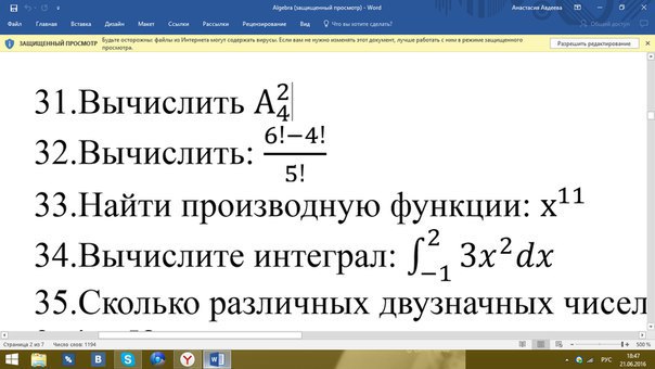 A^2_4 = 4!/(4 - 2)! = 4!/2! = 24/2 = 12