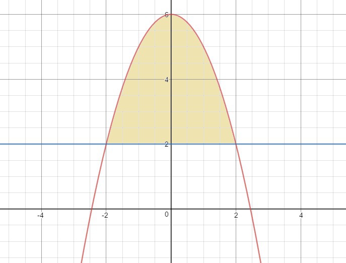 Найти площадь фигуры, которая ограничена параболой y=6-x^2 и прямой y=2