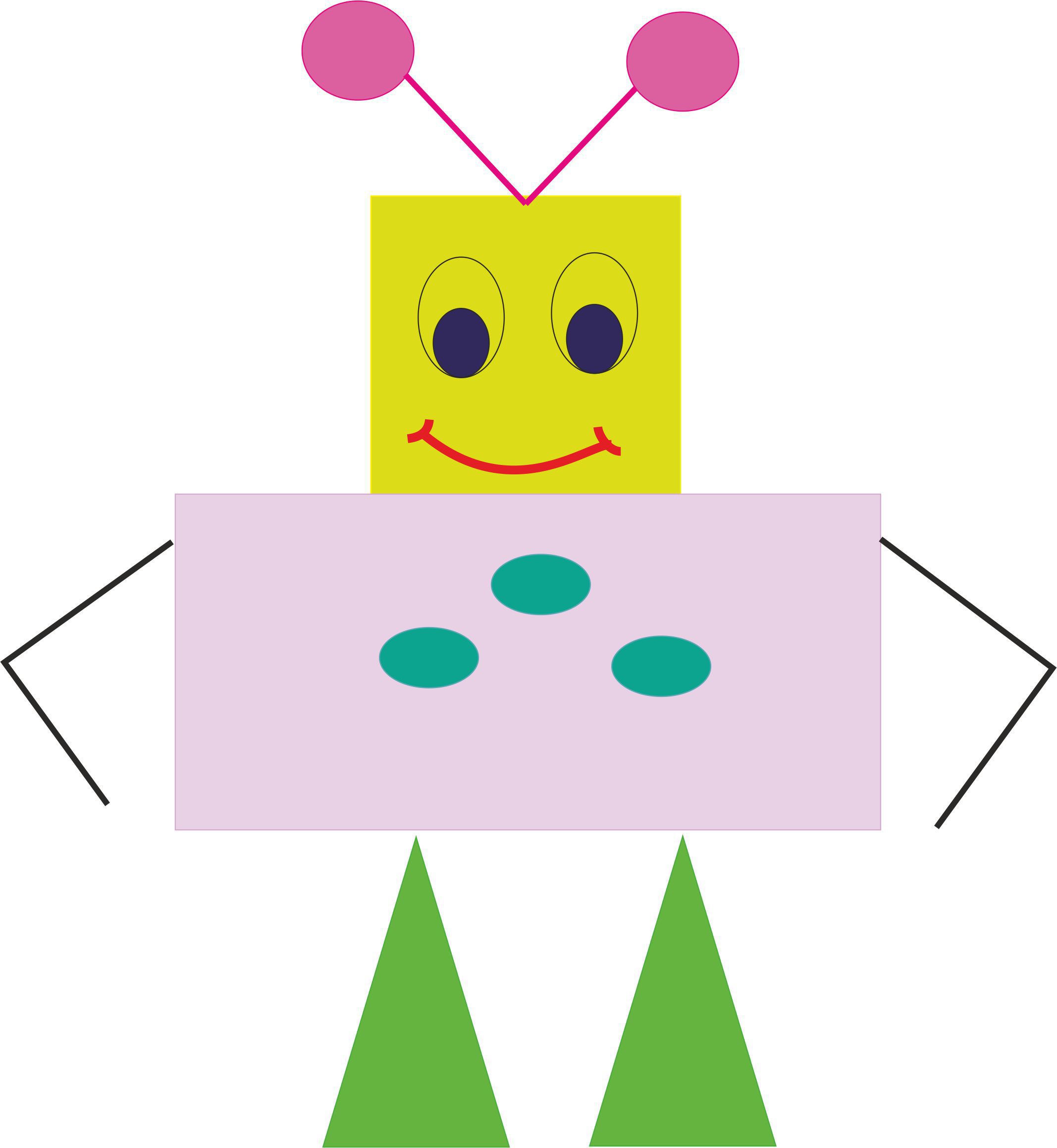 1) голова - квадрат, 4 прямых угла;