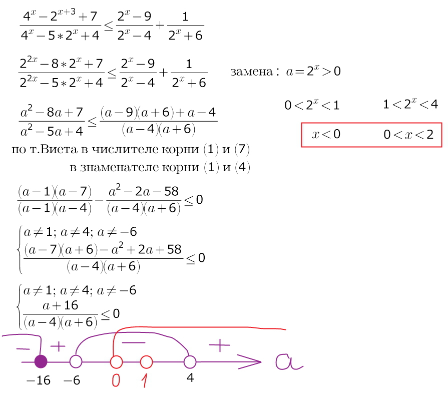сделав замену и упростив выражение, выбираем только положительные значения для новой переменной)))