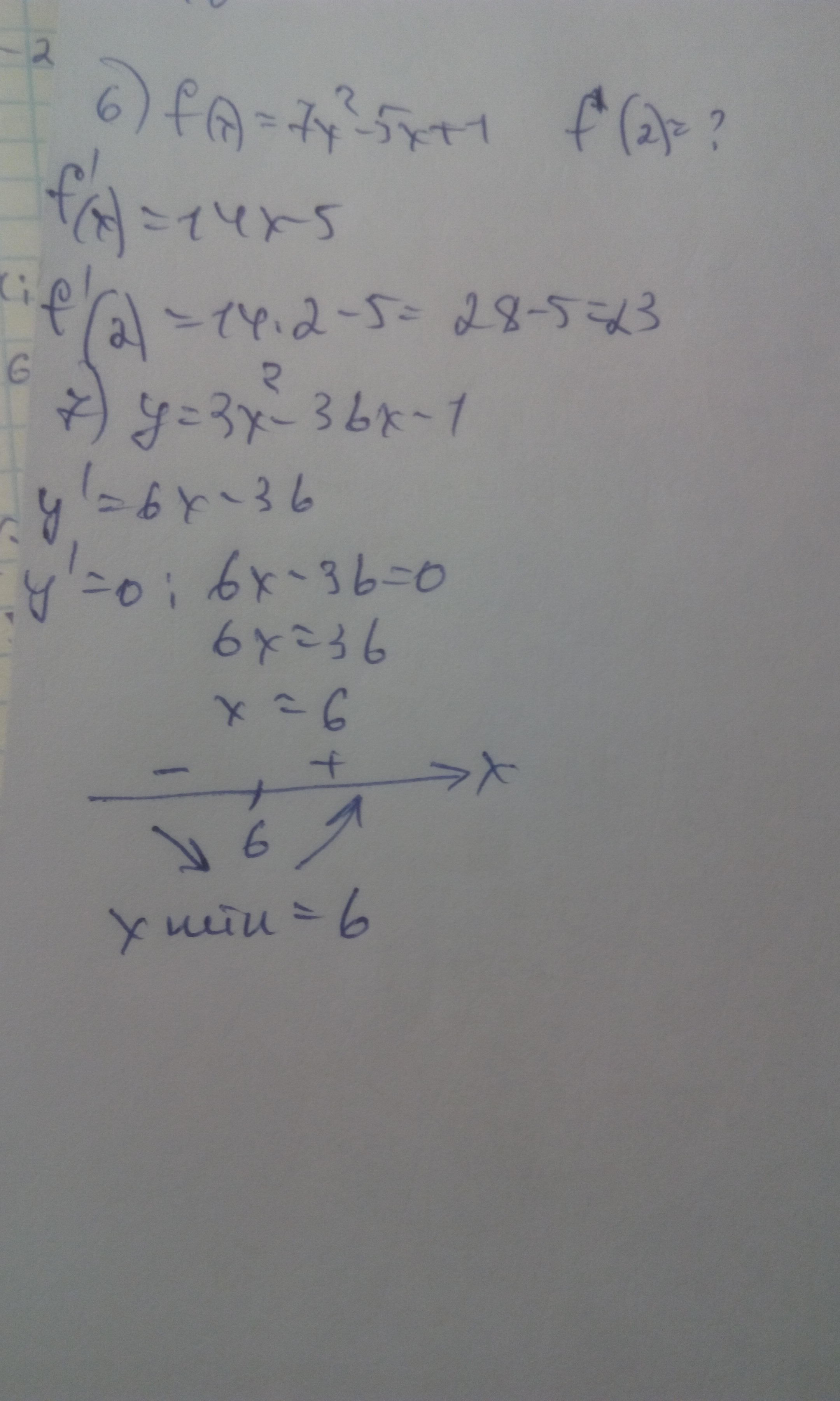 6)Найдите значения производной функции f(x)=7x в квадрате - 5 x +1 в точке
