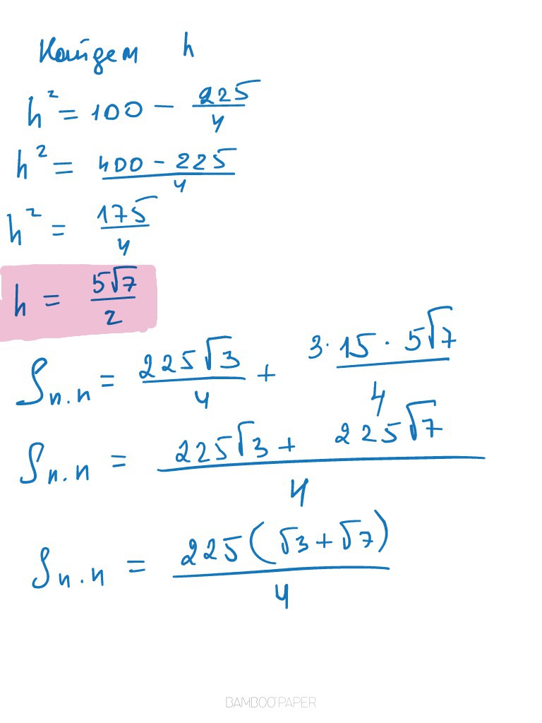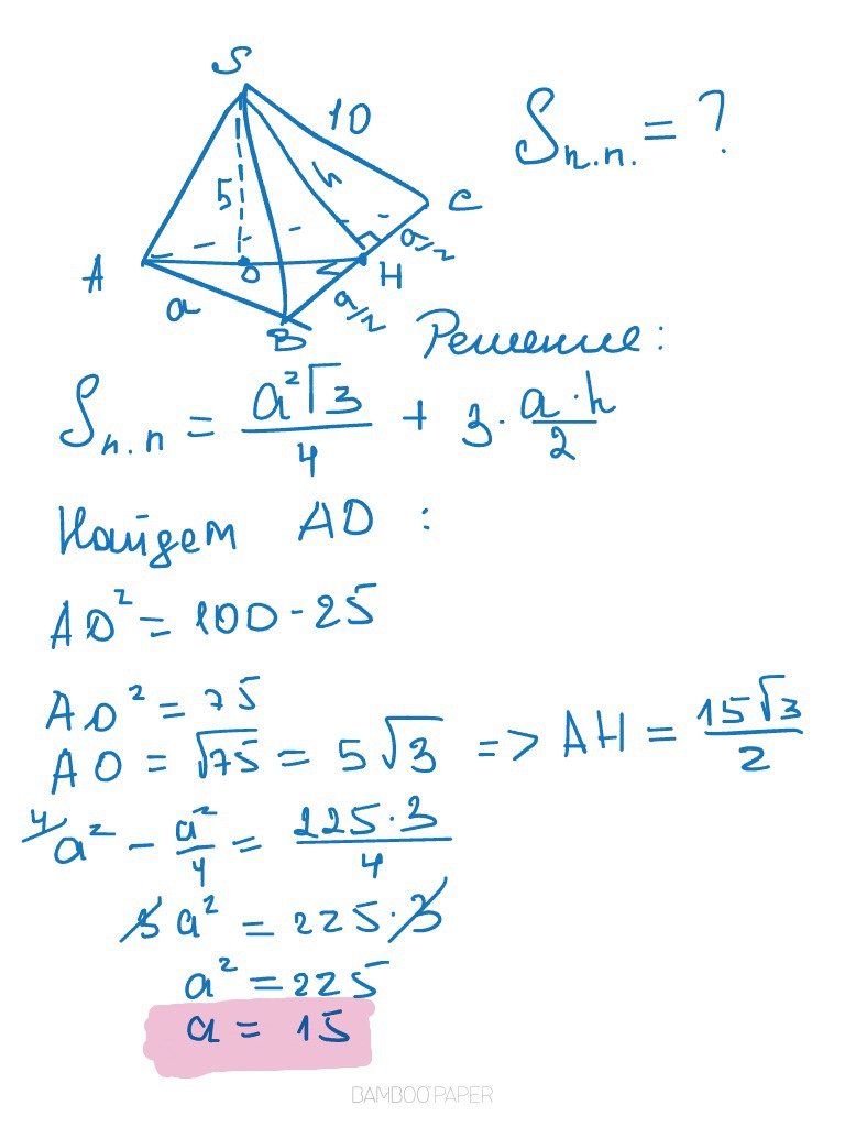 Боковое ребро правильной треугольной пирамиды равно 10 см, а высота равна 5 см. Найдите полную поверхность пирамиды.