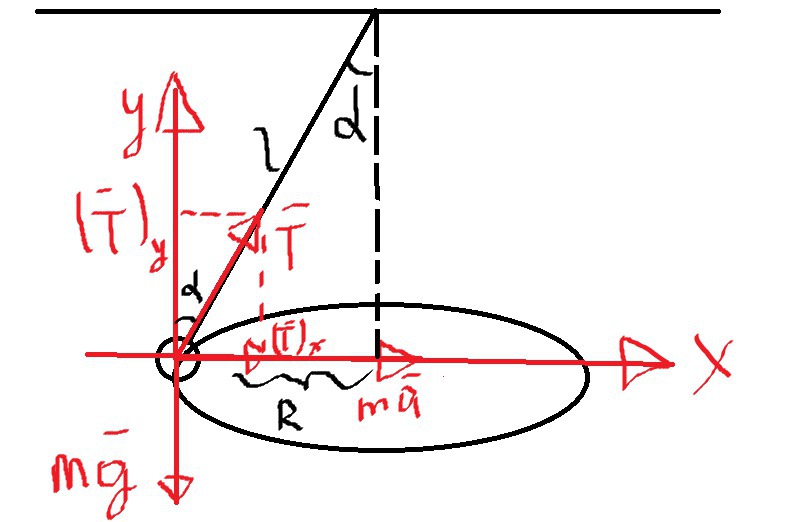 a = v^2 / R => v = sinα sqrt((Tн l)/m).