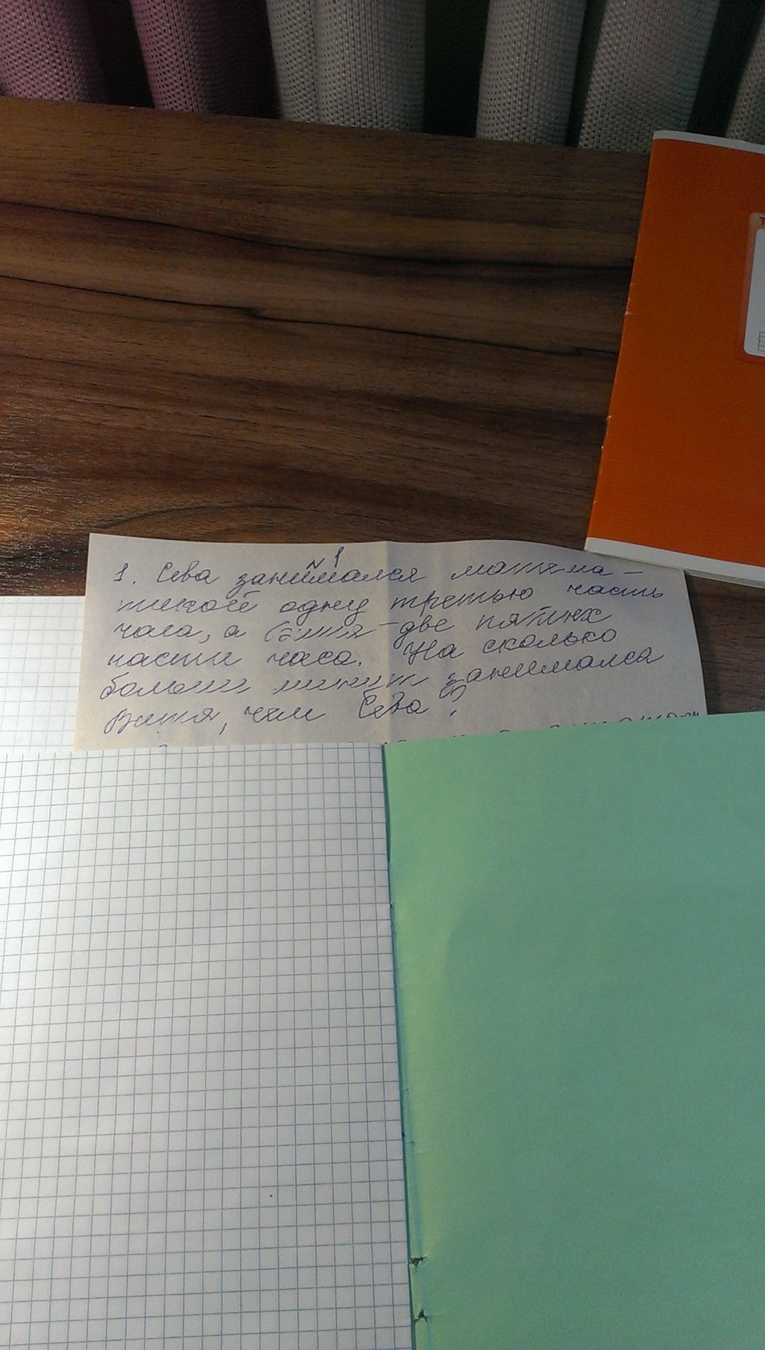 Ответ: на 4 минуты больше занимался Витя чем Сева