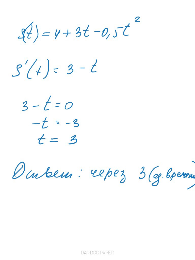 прямолинейное движение материальной точки описывается законом s(t)=4+3t-0,5t^2 через какое время после начала движения точка остановится?