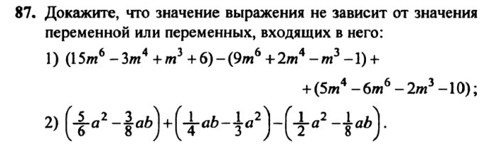В обоих случаях слагаемые с переменной взаимоуничтожились, это означает что при любых значениях переменной значение выражения будет одинаковым.