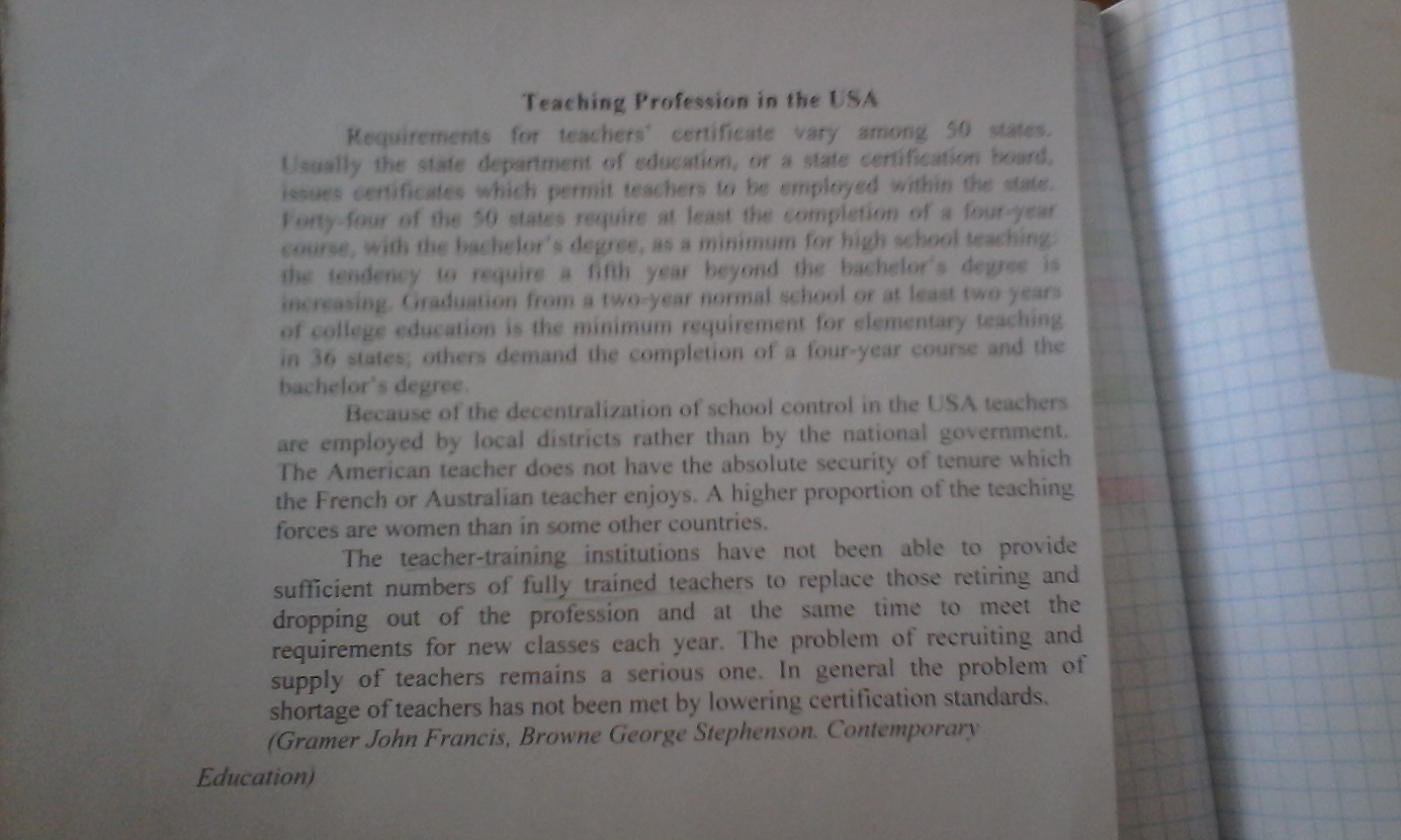 3. Forty-four of the fifty states require at least the completion of a four-year course as the minimum for the teacher of high school.