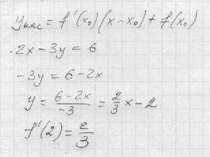 y=(6-2x)/(-3) f'(2)=2*(-3)-(6-2x)*(-1)=-6+(6-2*2)=-6+2=-4