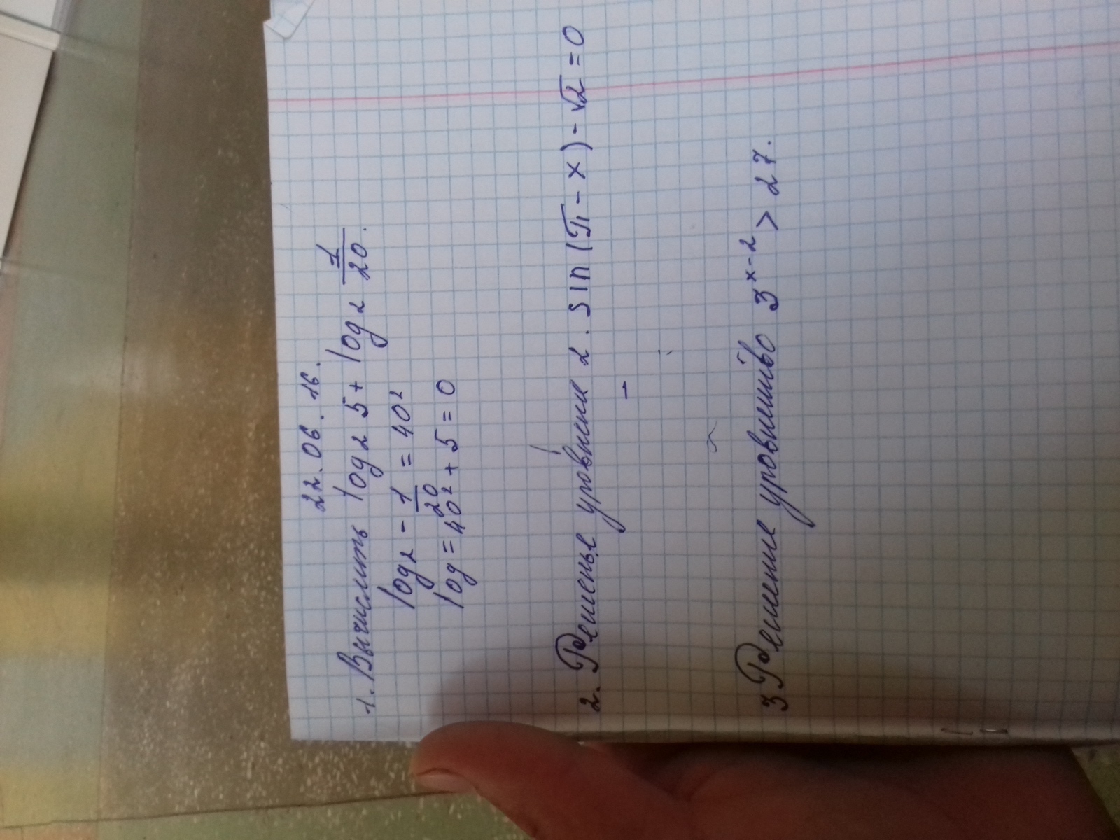 1)log2 5 + log2 1/20 = log2 (5.1/20)=log2 (5/20)=