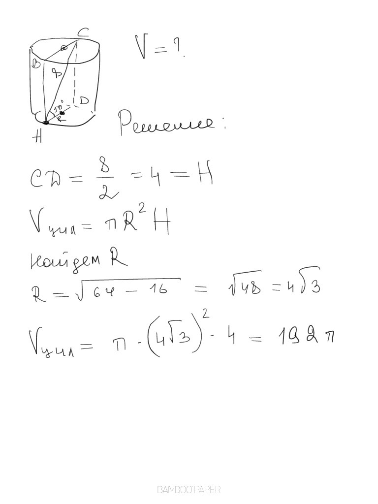 Диагональ осевого сечения цилиндра равна 8 см и наклонена к плоскости основания цилиндра под углом 30%.Найдите обьем цилиндра