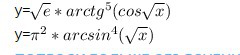 1) y'=(√e)(4arctg(cos√x)^4)*(arctg(cos√x))'=5(√e)[(arctg(cos√x))^4]***{1/(1+cos²√x}*(cos√x)'=5(√e)[(arctg(cos√x))^4]*{1/(1+cos²(√x)}*(-sin√x)*(√x)'=