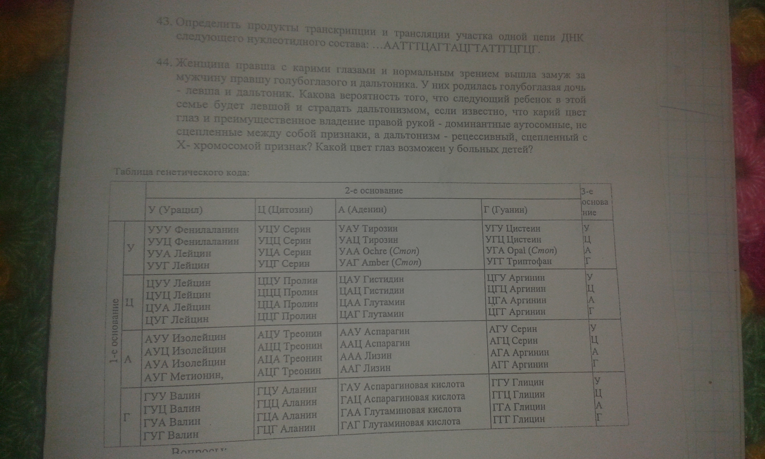 Теперь со второй цепи ДНК строим цепь РНК по принципу комплементарности А = У; Г = Ц (пояснение: где Т, заменяем на А):