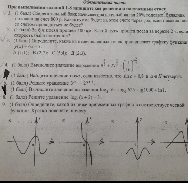 7) ㏒₂16+㏒₅625+lg1000+㏑ 1= 4+4+3+0=11