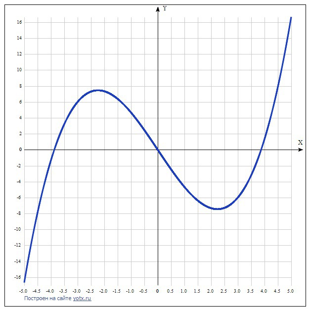 Имеем 3 корня: х = 0, х = √15, х = -√15.