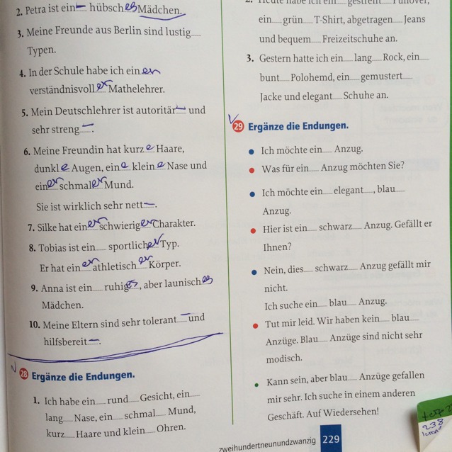 7. Kann sein, aber blaue Anzüge gefallen mir sehr. Ich suche in einem anderen Geschäft. Auf Wiedersehen.