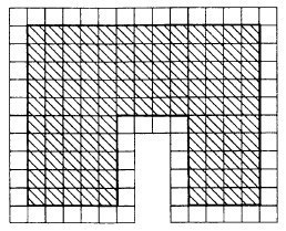 План парка разбит на клетки. Каждая клетка обозначает квадрат 3 м х 3 м. Найдите площадь дорожки, идущей вокруг клумбы (клумба на плане заштрихована). Ответ дайте в квадратных метрах.