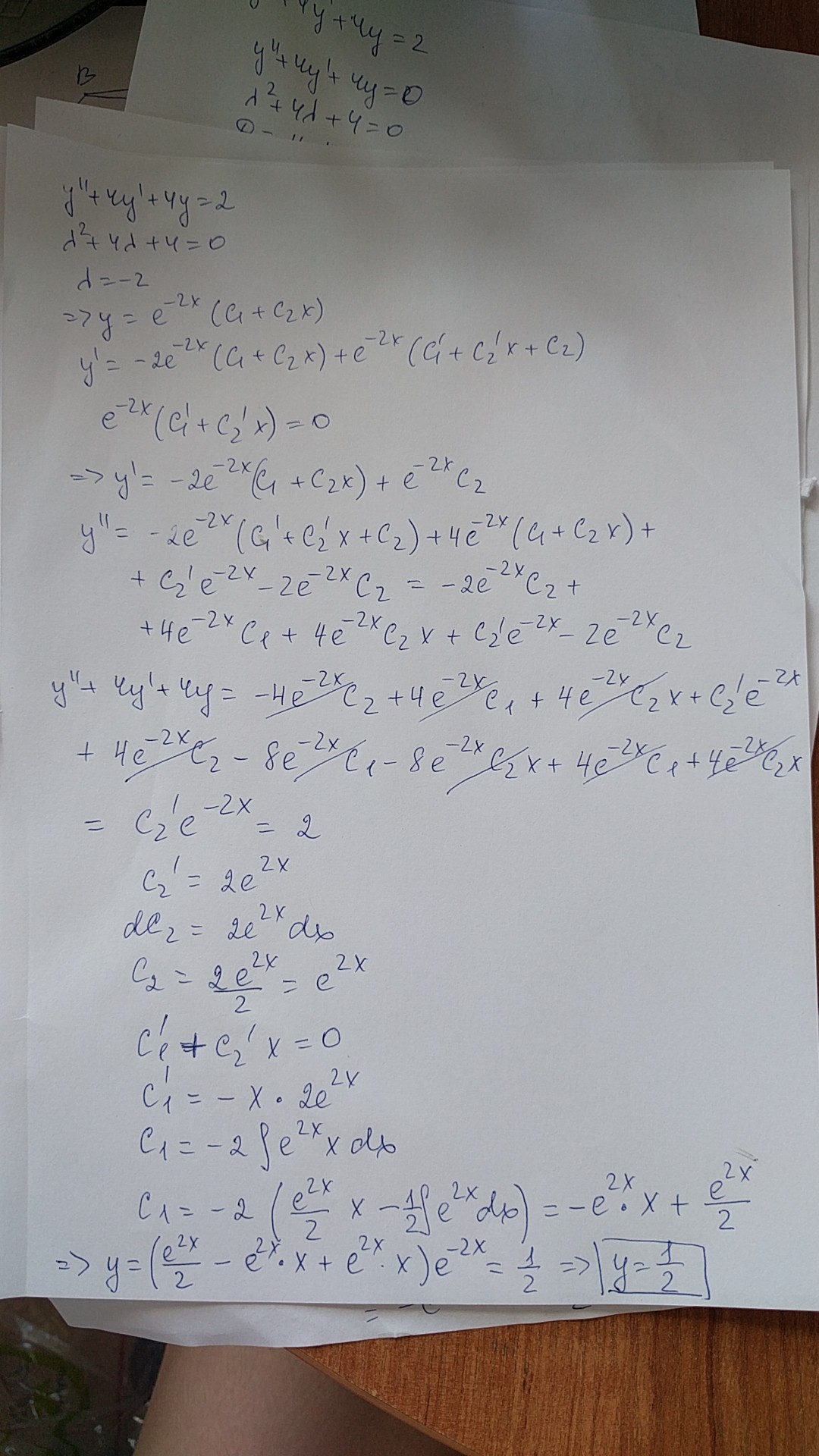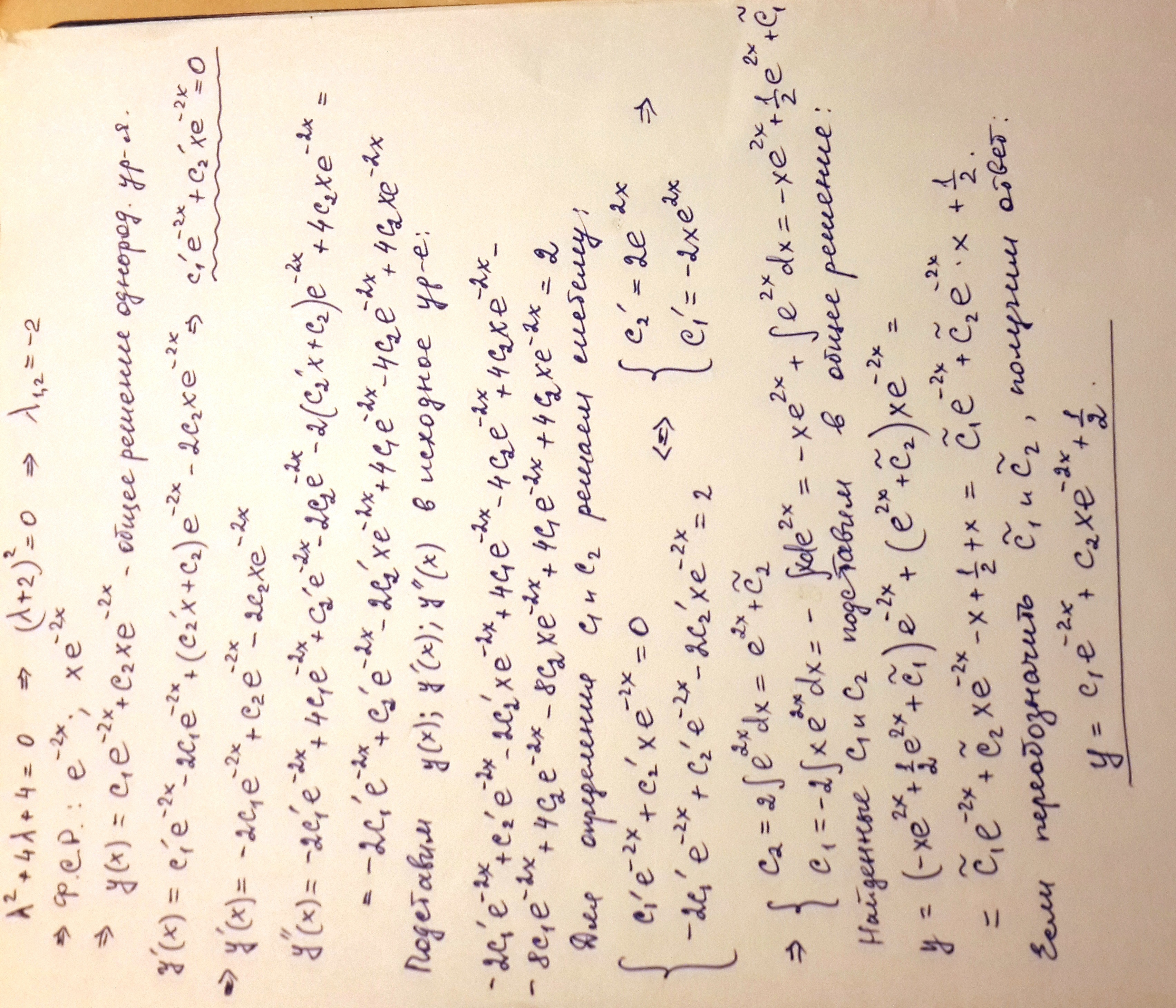 На фото предлагаю свое решение (Метод вариации произвольных постоянных)