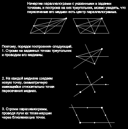 Постройте параллелограмм по его вершине и серединам сторон, которым эта вершина не принадлежит.