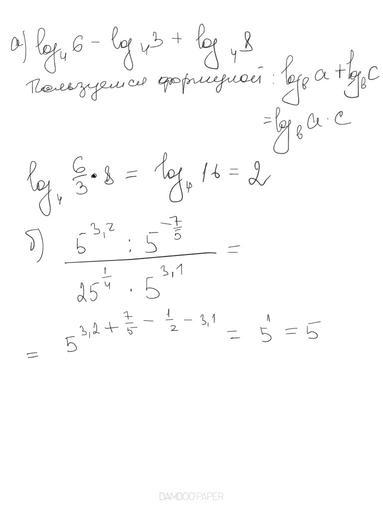 b)5^(3,2+1,4)/5^(0,5+3,1)=5^4,6/5^3,6=5