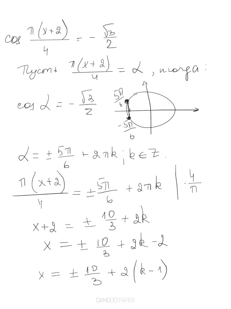 π(x+2)/4=-5π/6+2πn U π(x+2)/4=5π/6+2πk