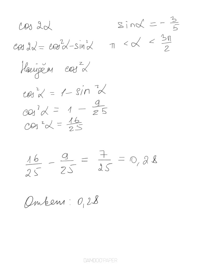 cos2a=1-2sin²a=1-2*9/25=1-18/25=7/25