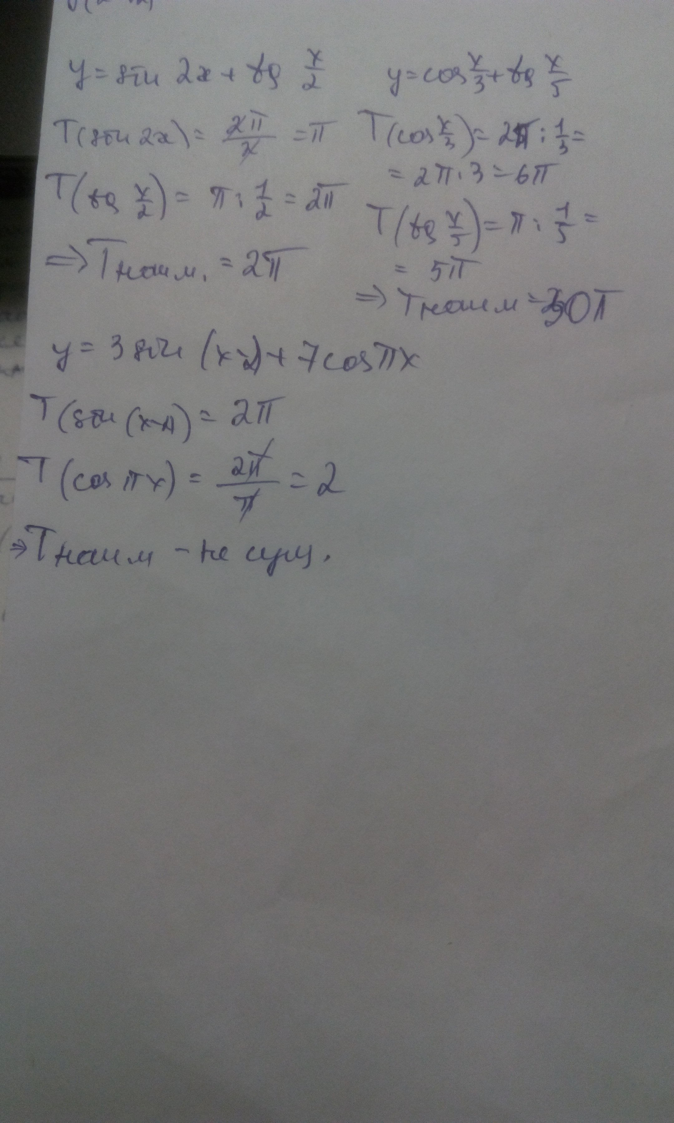 Наим. положительный период-тот,который делится на частный период и при делении даёт ЦЕЛОЕ число,поэтому в последнем задании он не существует.