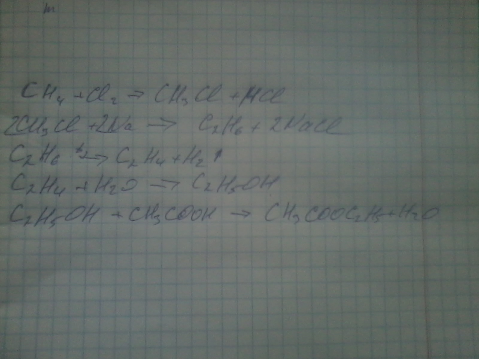метан-хлорметан-этан-этилен-этиловый спирт-этилацетан